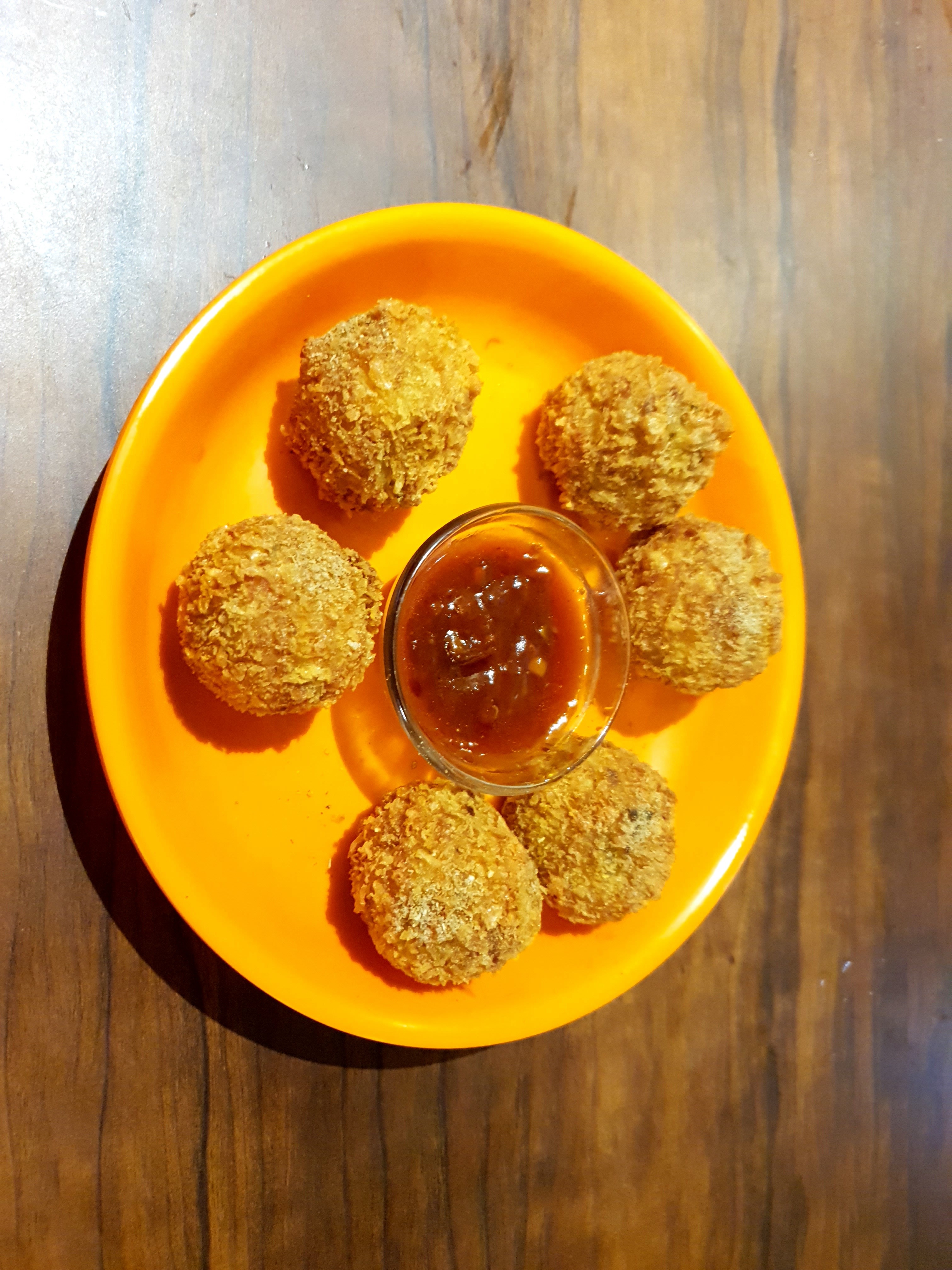 2. Golden Corn and Cheese(₹98): We basically ordered Golden Fried Prawns, but due to some miscommunication, we were served this,but thats alright, because for the first time, I came to know that Veg dishes are also good! The corn balls were crispy and tasty indeed with that cheesy affair inside!