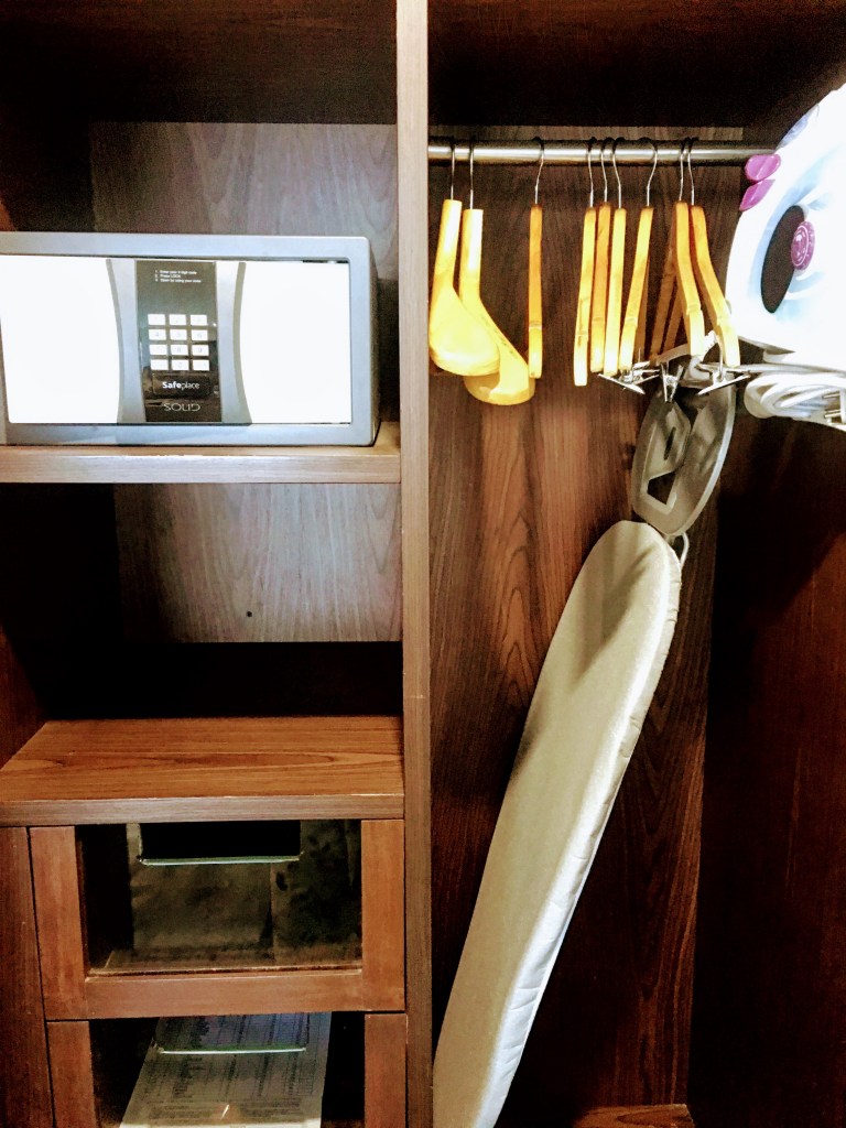 - There was an in-room closet which had an ironing board provided with an iron. The closet also had a password protected locker inside to keep your valuables.