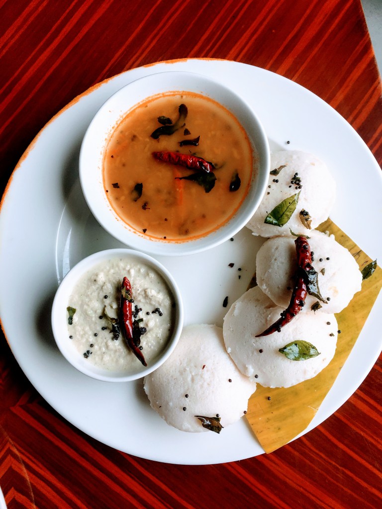 - South- Indian Breakfast which comprised of Idli/Dosa with Chutney and Sambhar.
