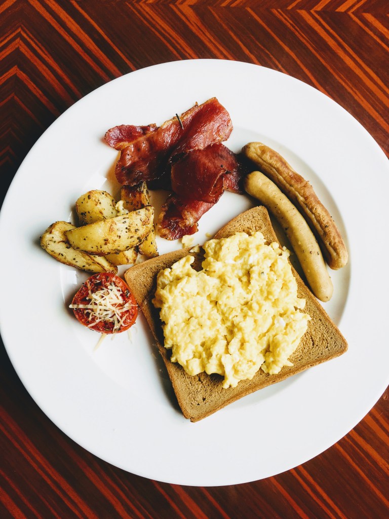 - American Breakfast which comprised of sausages, bacon, scrambled eggs and Brown bread.